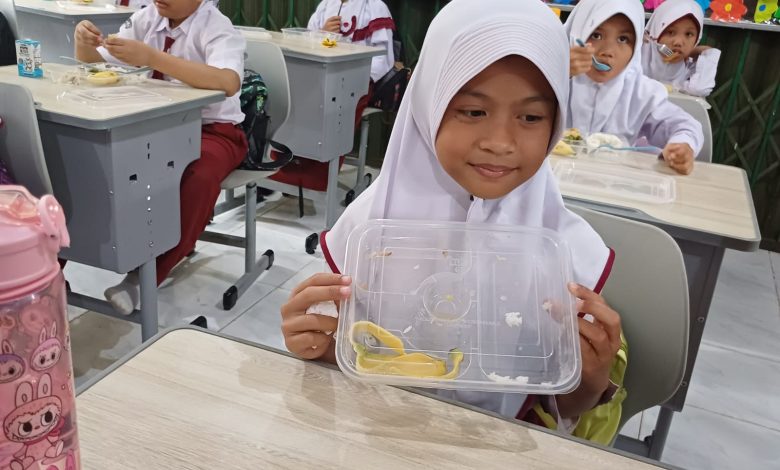 “Habis, suka sama makanannya, karena di rumah bunda suka masak tahu dan tempe, jadi Queen suka,” ujar Queen usai menyantap semua menu di kotak makan plastik itu.