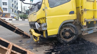 Diduga Mengantuk Saat Mengemudi, Truk Tabrak Pembatas Fly Over Simpang Bandara
