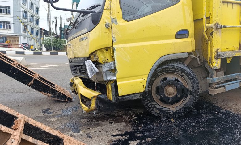 Truk bernomor polisi BG 8228 MC warna kuning itu tampak rusak parah di bagian depan. As roda patah, oli tumpah dan menggenangi jalan, sementara besi pembatas fly over terlihat bengkok dan pecahan beton berserakan di lokasi kejadian.