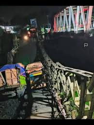 Sibernas1.com  Lahat—– Jembatan penghubung utama Kabupaten Lahat- Muara Enim yang terletak di Desa Muara Lawai, Kecamatan Merapi Timur, Kabupaten Lahat ambruk pada Minggu (29/06/2025) sekitar pukul 23.10 WIB.