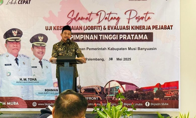 SIBERNAS1.com, Palembang — 30 Mei 2025 – Wakil Bupati Musi Banyuasin, Kyai Rohman, membuka acara Job Fit dan Evaluasi Kinerja Pejabat Pimpinan Tinggi Pratama (PPTP) di Hotel Santika Premiere Bandara Palembang. Acara ini bertujuan untuk memastikan kesesuaian kompetensi pejabat dengan kebutuhan dan arah pembangunan daerah, serta meningkatkan kualitas pelayanan publik.